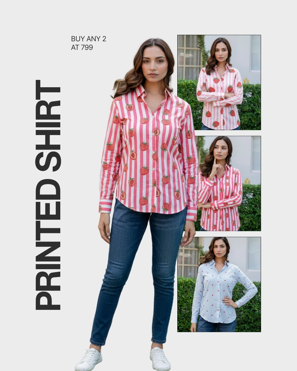Beige & Multicolor Striped Printed Casual Shirt for Women